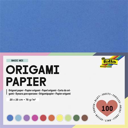 Origami papír, 20x20 cm, 70 g, 100 lap, FOLIA, vegyes színek