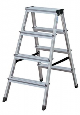 KezdőlapÜzemeltetésLétesítmény üzemeltetésFellépők és létrákKét oldalon járható létra, 2x4 lépcsőfokos, KRAUSE "Dopplo"